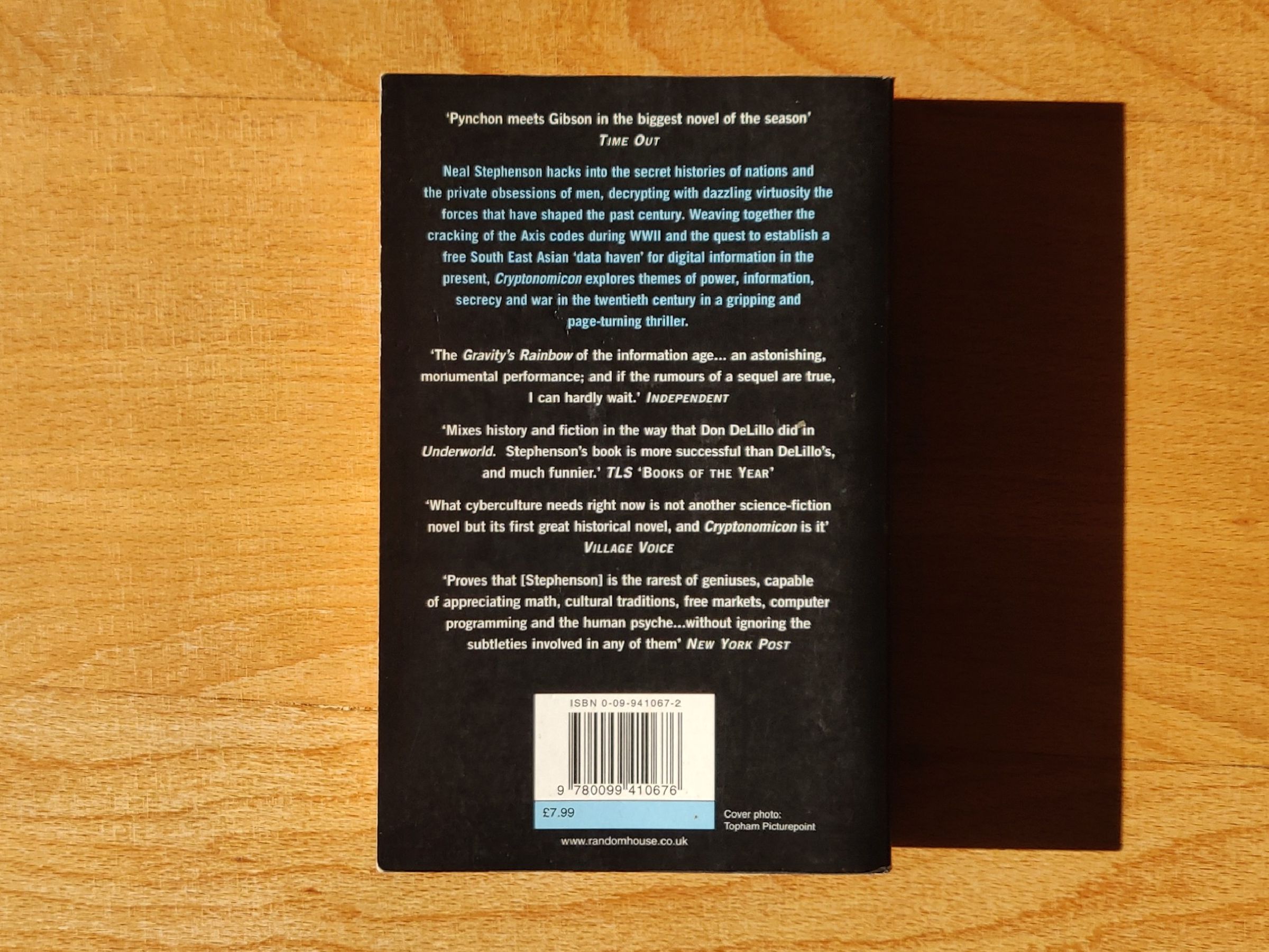 “Neal Stephenson hacks into the secret histories of nations and the private obsessions of men, decrypting with dazzling virtuosity the forces that have shaped the past century. Weaving together the cracking of the Axis codes during WWII and the quest to establish a free South East Asian ‘data haven’ for digital information in the present, Cryptonomicon explores themes of power, information, secrecy and war in the twentieth century in a gripping and page-turning thriller.”
