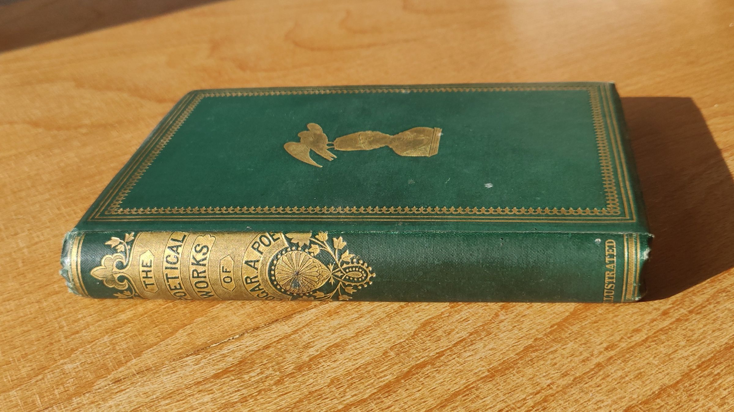 Kompletní rané anglické vydání poezie Edgara Allana Poea. Edice dedikovaná Dante Gabrielovi Rossettimu. Nedatováno, ale podle dostupných zdrojů vydáno nejspíš roku 1865. V knize je věnování z roku 1865. Krásná raně viktoriánská celoplátěná vazba se zlacením. Štítek “BOUND BY BURN 37 & 38 KIRBY ST” odkazuje na významnou londýnskou knihařskou firmu z 19. století Burn & Co. Stav velmi dobrý (přiměřeně stáří), běžné skvrny na papíru (“foxing”) výraznější na úvodních a závěrečných stranách, jinak minimálně.